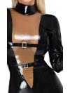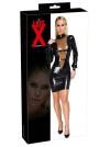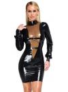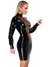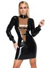 Abito aderente nero a maniche lunghe in lattice In lunghezza al ginocchio Inserto a V trasparente color fumo sul davanti 2 cinturini con fibbia regolabili sul davanti Zip lunga sul retro Latex provocante in uno stile elegante! Sensazionale abito di LateX al ginocchio in lattice naturale nero (spessore 0,4 mm). Taglio stretto e aderente con maniche lunghe e collo alto. Inserto a V extra-profondo sul davanti in trasparenza color fumo con cinturini regolabili in tinta sotto il seno e in vita. Zip lunga sul retro per facilitare la vestizione e la svestizione. Lattice, realizzato con lattice di gomma naturale .