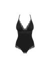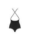Un body chic realizzato in morbido ed elasticizzato tessuto multi-stretch con spalline incrociate regolabili e cavallo aperto. Presenta un elegante pendente tra le coppe e un bellissimo bordo in pizzo su scollatura, fianchi e fondoschiena. Materiale: 90% Poliammide, 10% Elastan