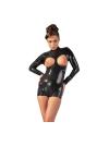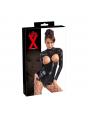 Presenta la tua femminilità con questo body in latex nero a maniche lunghe e seni scoperti. Chiusura posteriore mediante zip che continua fin sotto il cavallo. Immerso in forma piatta. Lattice (realizzato con lattice di gomma naturale, che può causare allergie).