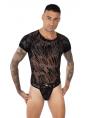 Sexy Body in tessuto trasparente con schizzi di colore geometrici neri floccati su base di tulle trasparente nero; della collezione eros veneziani uomo con maglietta girocollo mezza manica e retro a perizoma chiusura ganciata sotto i genitali tessuto elasticizzato e sexy con una manifattura morbida tessuti testati per garantire una maggior sicurezza e cura delle vostre parti intime made in Italy taglie disponibili: SM 42-44 ML 46-48 LXL 50-52 materiale: 85%polyamid 15%elastam