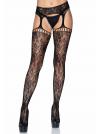 Calze in pizzo Gardenia con parte superiore in rete e reggicalze attaccato , Lace garter belt stockings