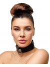 selvaggio e sexy! Collare in pelle di alta qualità con anello decorativo attaccato a una piccola maglia. 4 cm di larghezza. Lunghezza: 45 cm. Con chiusura a fibbia regolabile: 32-50 cm. Pelle (conciata senza cromo), metallo. Contiene parti non tessili di origine animale.