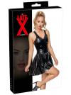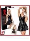 Abito nero per le fashioniste di gomma! Semplice e bellissimo mini abito aderente di LateX in lattice nero (spessore 0,35 mm). Top aderente con spalline strette nella parte superiore e ampia gonna oscillante nella parte inferiore. Lattice realizzato con lattice di gomma naturale, che può causare allergie.
