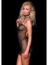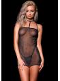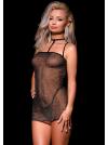 Abito sexy realizzato in rete trasparente, tessuto delicato e glitterato, spalline elastiche e regolabili, getti decorativi argentati sullo scollo.