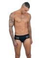 Slip mélange nero della nuova collezione eros veneziani uomo, con patta push-up e foderata, tessuto trasparente sui fianchi e ornato con delle cuciture geometriche prodotto sexy e confortevole. L’effetto push-up non ha la conchiglia ma è dato grazie ad una cucitura circolare su base elastica morbida che permette di tenere compatti genitali maschili. Aggiunta della taglia XXL più grande rispetto alle tradizionali sm-ml-lxl. Per dare la possibilità a una vasta clientela di poter indossare i prodotti. Design dell’etichetta del brand rinnovata, più elegante e discreta, messa all’interno dei capi. made in Italy materiale:100%POLYESTER