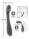 Per una precisa stimolazione del punto G! Vibratore per il punto G di Sweet Smile, ottimamente curvato, con collo flessibile e testa paffuta per la stimolazione precisa del tuo punto G vaginale. Può anche essere usato per stimolare il punto P anale. Un totale di 12 modalità di vibrazione fornisce un sacco di varietà e può essere comodamente controllato direttamente sul giocattolo al tocco di un pulsante. Rivestito dappertutto con una texture morbida e setosa, il vibratore fornisce una sensazione molto piacevole sulla pelle e sul corpo durante il gioco e la stimolazione. Ricaricabile - cavo di ricarica USB incluso. Lunghezza totale 20 cm, lunghezza d’inserimento 15 cm, testa lunga 5,5 cm, Ø 1,9 cm - 3 cm. Peso 109 g. Silicone, PU, ABS.